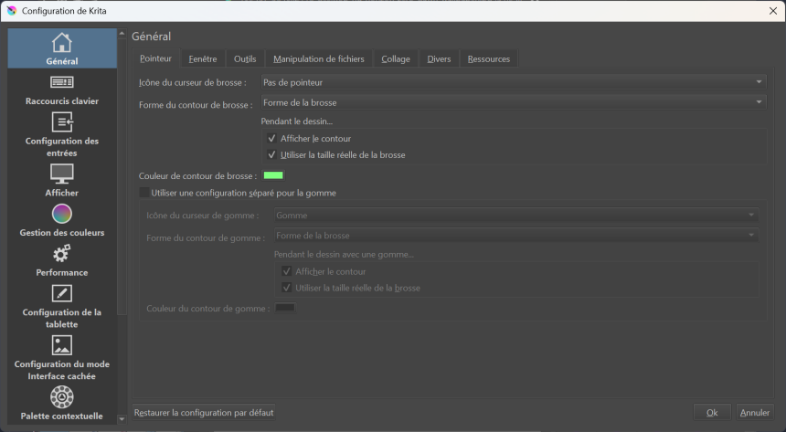 C'est tout ce qu'il y a à dire concernant la configuration de Krita avec le Général.