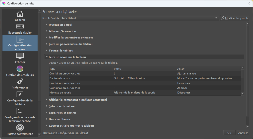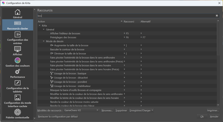 Rendez-vous dans Paramètres > Configuration de krita > Raccourcis clavier.