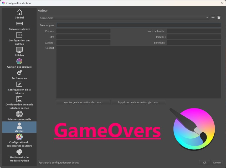 GameOvers se lance dans l'artistique et l'art du dessin avec Krita 5.2.