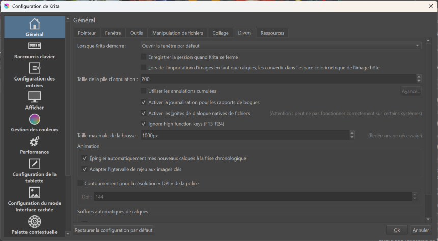 C'est tout ce qu'il y a à dire concernant la configuration de Krita avec le Général.